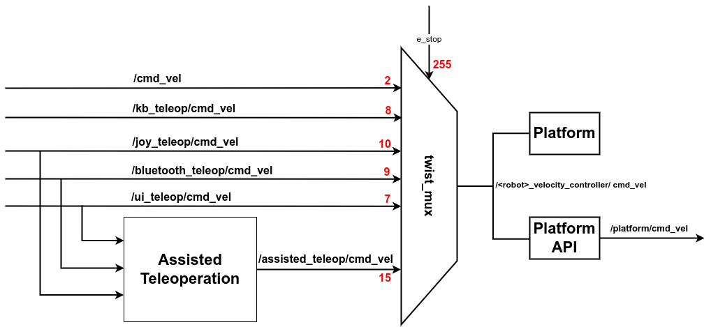 | "Error: Invalid twist_mux configuration" | The twists mux configuration has been modified and does not satisfy the requirements for safe operation under the requirements of assisted teleoperation |