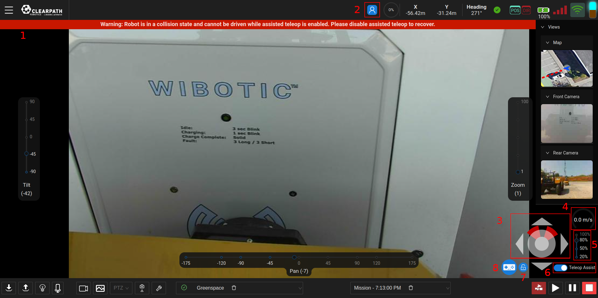 - Error/Warning Bar: A bar along the top of the page reporting the error or warning status of the Assisted Teleoperation feature.