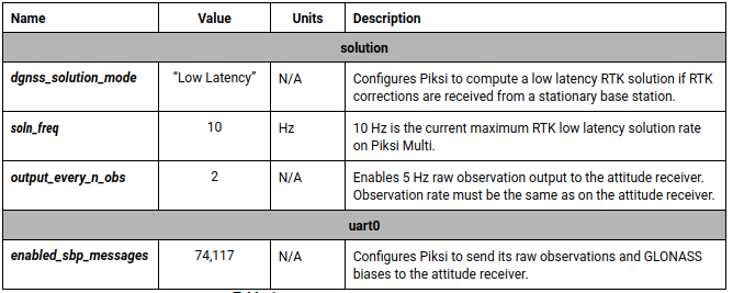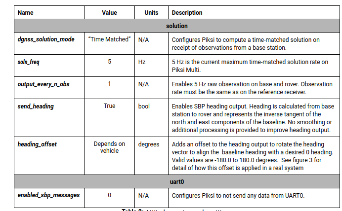 The instructions in this section will overwrite some of the settings set in UGV Position GPS Configuration on the Position/Reference Duro receiver. This is normal since the configuration in UGV Position GPS Configuration is for a UGV with only the position Duro receiver. If the heading receiver is connected as well, please continue with the instructions below.