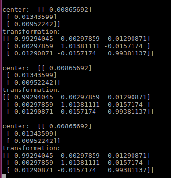 Ellipsoid fit parameters are displayed in terminal as shown in the figure below.