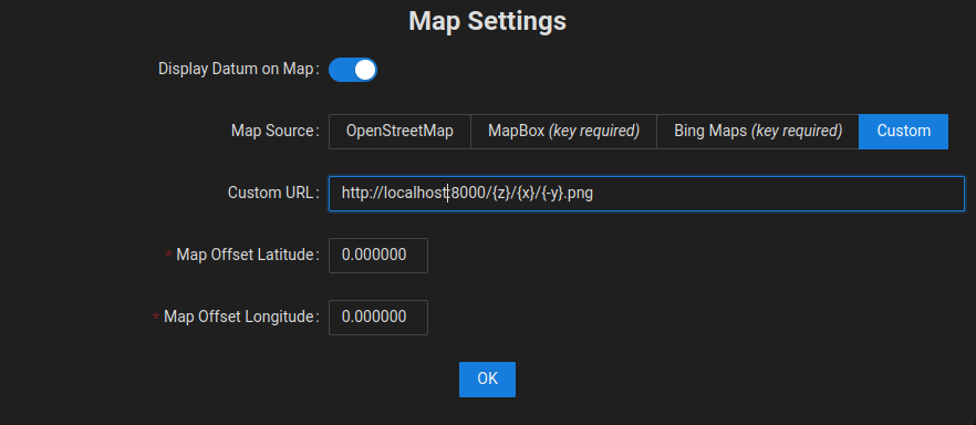 - Back in the Web UI, from the menu, select Settings→Map to bring up the Map Settings page.