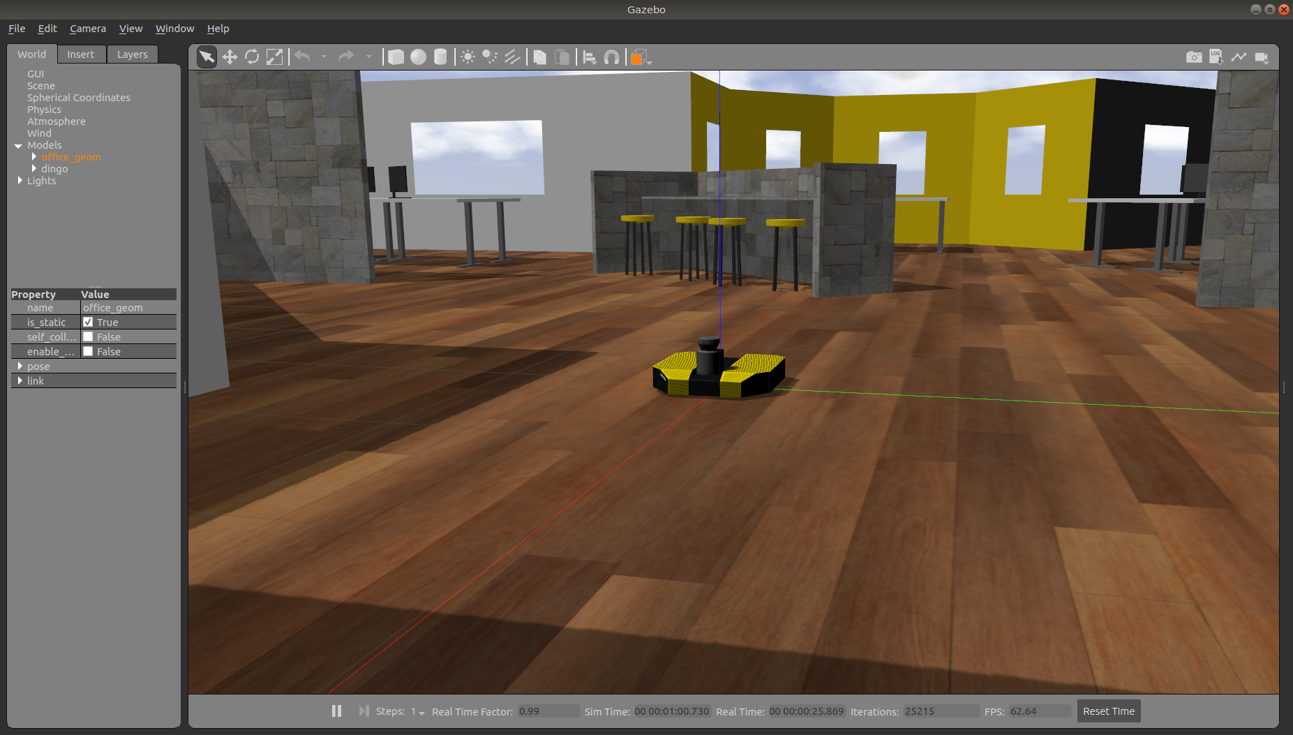 Navigating Dingo is a follow-on to what is learned in the Simulation tutorial, as navigation and map-making may be run in the simulated environment. However, this content is applicable to both the simulator and the real platform, if your Dingo is equipped with a laser scanner.
