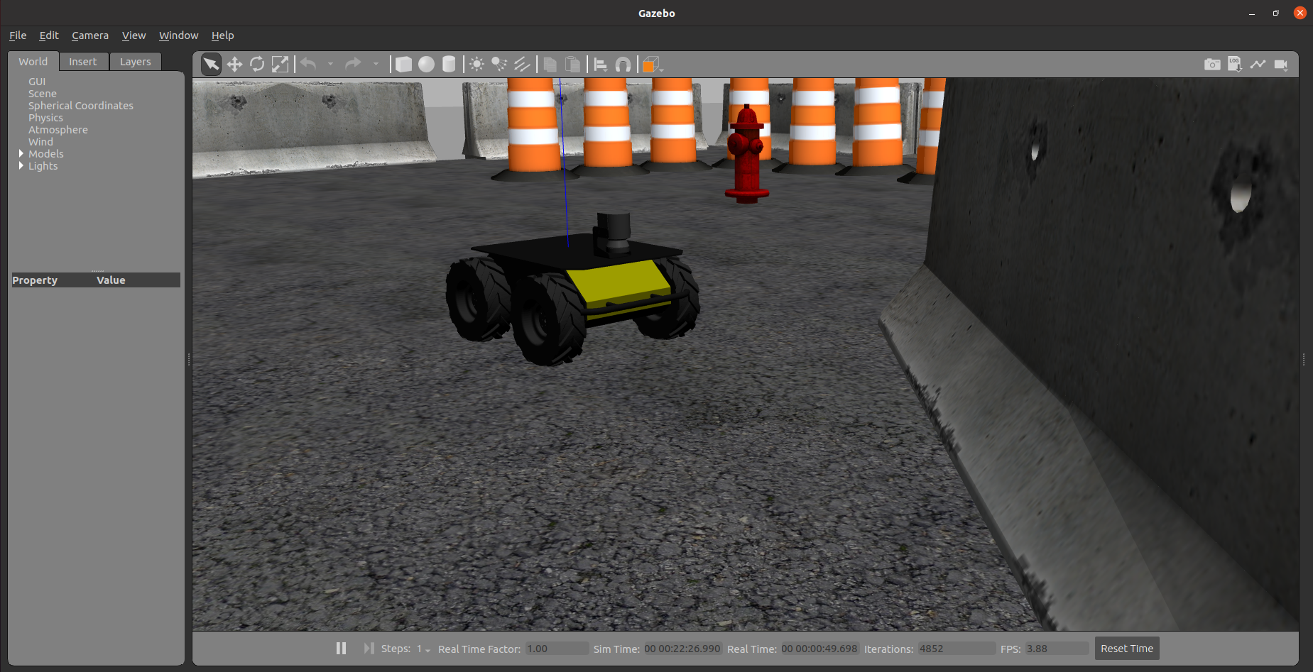 To add a Husky to any of your own worlds, simply include the spawn_husky.launch file in your own world's launch: