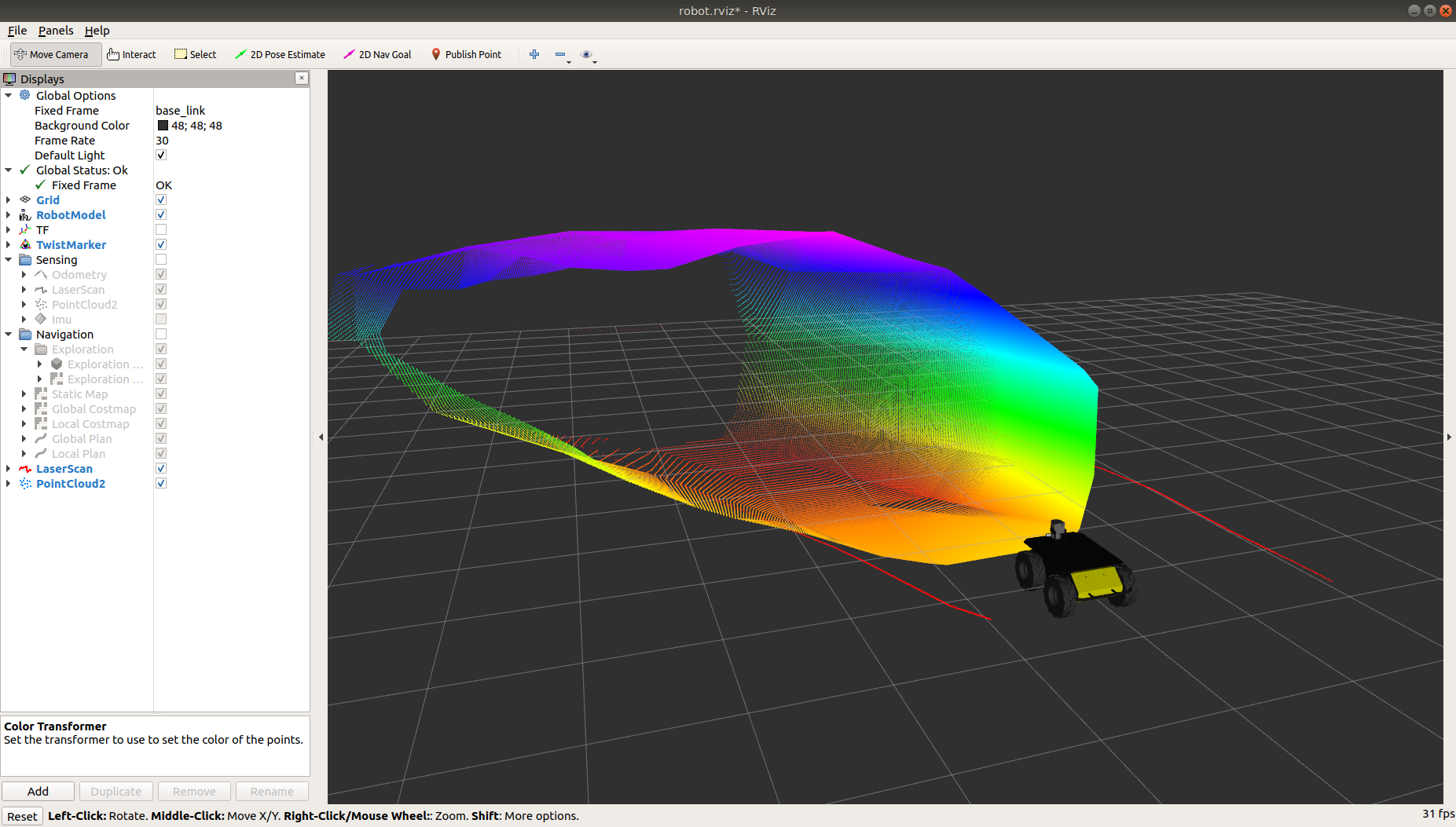 Husky's perception of the inside of the cave as a 3D pointcloud in RViz: