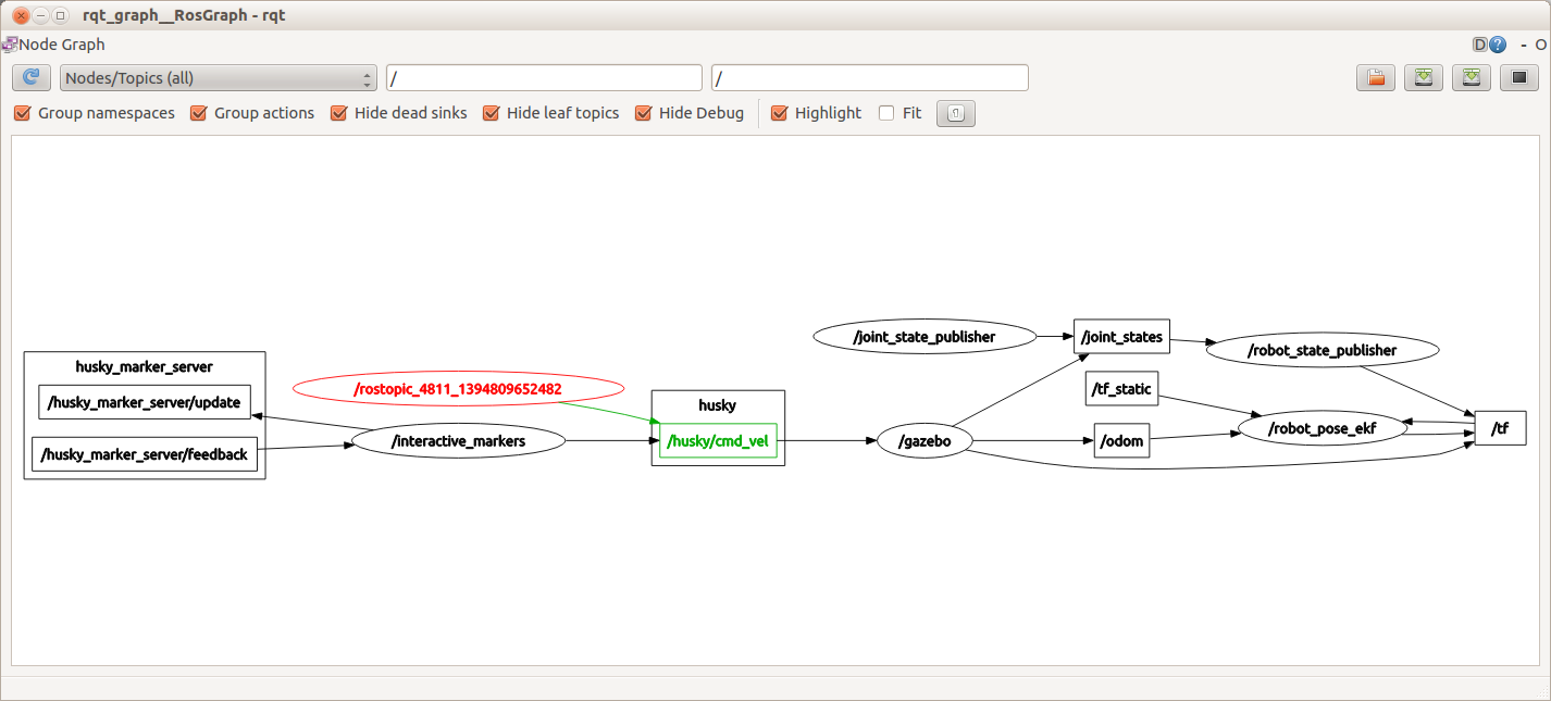 /move_base/cmd_vel | 2 | Autonomous movement input, for the Husky navigation packages |